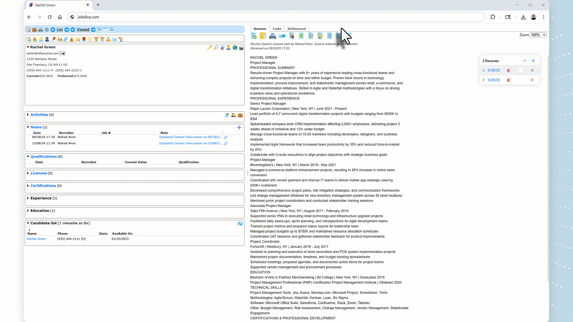 We’ve been delighted by RefAssured, both from a product and service perspective. Our clients as well as our contacts at the Joint Commission have been blown away by how the RefAssured reference reports look and the thoughtfulness by which the whole reference process is designed. The RefAssured team’s commitment to innovation and putting its customers first extends now to a powerful integration with JobDiva, our system of record where we work day in and day out. Having all the capabilities and benefits of RefAssured right within JobDiva is such a productivity boon for our team. We’re very excited.